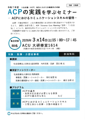 ACPの実践を学ぶセミナー -ACPにおけるコミュニケーションスキルの習得-